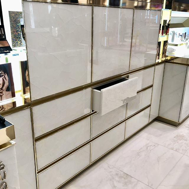 We take blocks and slabs of luxury marble in its traditionally bulky and heavy form and transform them into our exclusive patented lightweight marble solutions, which are also ultra-thin, and available in large format. We can now also offer lightweight marble in our super-sized format 1500 x 3100mm in a single piece without joints.